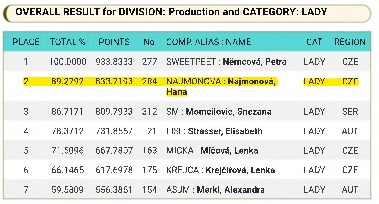 Ve své kategorii pustila před sebe pouze Norku, 2 Švédky a Němku